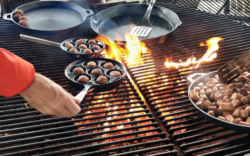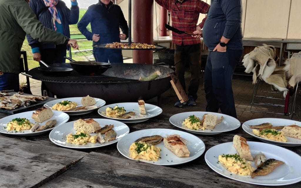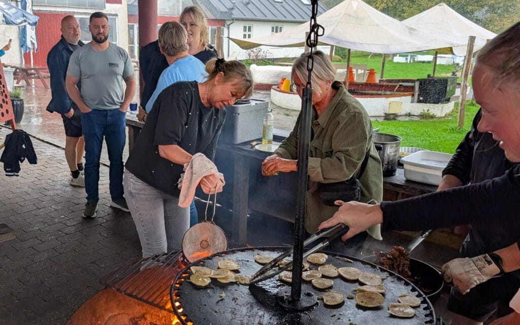 Det hele tilberedes af Jer, vores gæster på bål under kyndig vejledning.