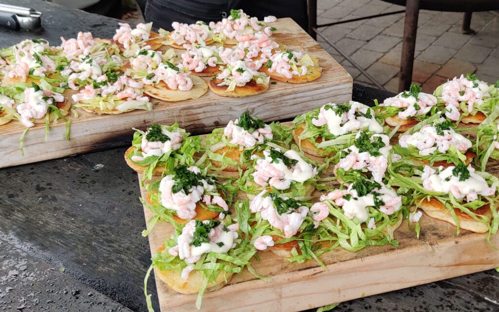 Vi er meget opmærksomme på at anvende lokale råvarer og meget gerne årstidsspecifikke. Lige nu tilbyder vi følgende, men listen bliver hele tiden udbygget. Du skal vælge 5 retter.